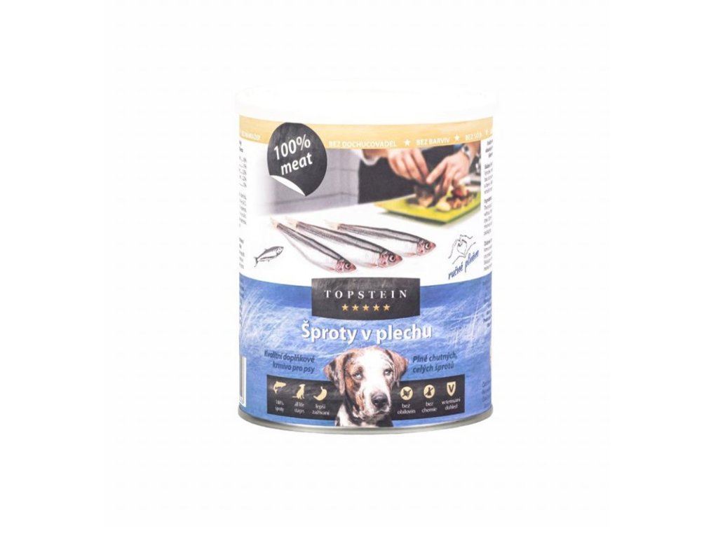 Vysoko kvalitná ručne plnená konzerva Topstein pre psov so 100% podielom živočíšnych bielkovín.