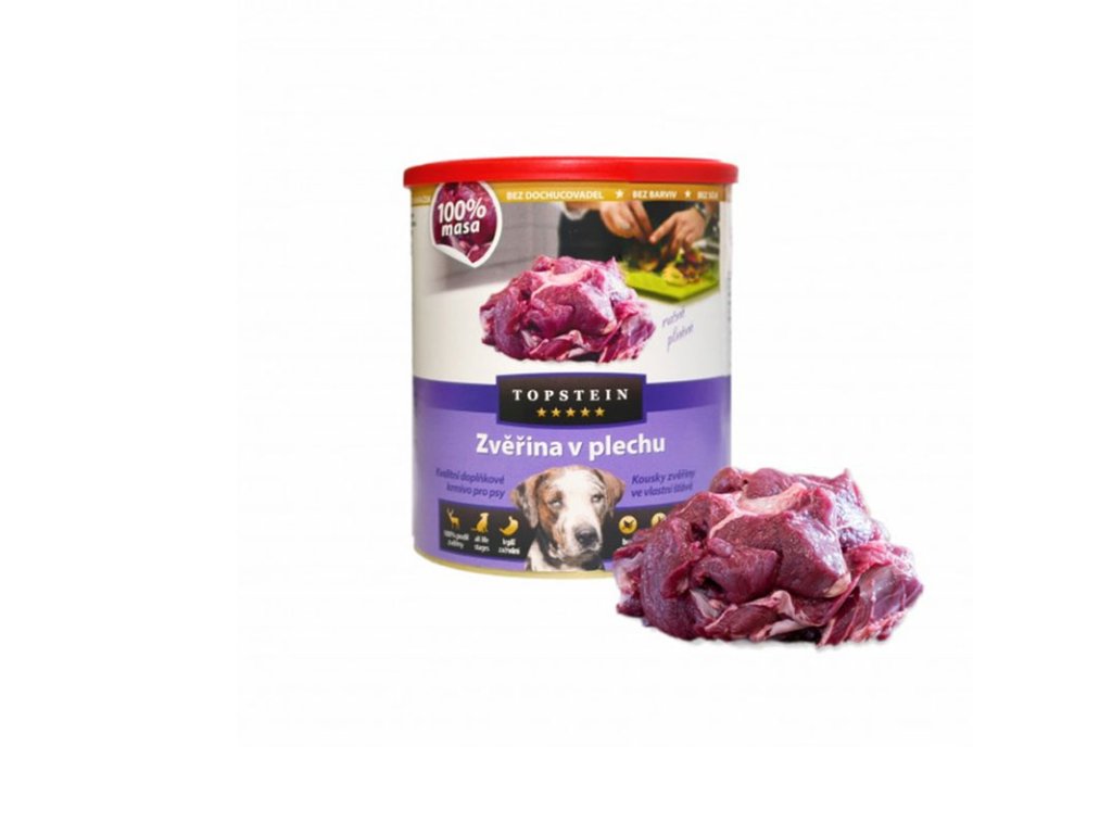 Vysoko kvalitná ručne plnená konzerva Topstein pre psov so 100% podielom živočíšnych bielkovín.