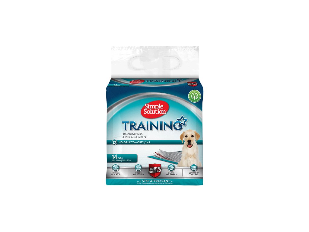 Tréning pre vykonávanie potreby vášho nového šteniatka môže byť výzvou. Našťastie sú už preč dni výcvikov kedy sa používali noviny. V súčasnosti je tento proces oveľa čistejší a jednoduchší a to vďaka tréningovým podložkám od Simple Solution. Každá podložka je superabsorpčná a tak chráni vaše podlahy a koberce. Podložky sú vedecky napustené atraktantom, ktorý povzbudzuje vášho maznáčika k vykonávaniu potreby na tejto podložke. Tréning je tak s pomocou týchto podložiek Simple Solutions oveľa jednoduchší. Je to tak jednoduché, že mnoho majiteľov domácich zvierat ich tiež používa ako alternatívnu toalety pre choré domáce zvieratá. Podložky sú k dispozícii v štandardnej veľkosti 54,5 x 57 cm.