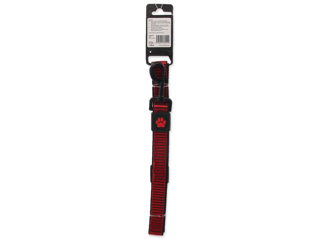 Textilný obojok vyrobený z kvalitného nylonu. Nastaviteľná dĺžka, vhodný pre malé psy. Klasický dizajn, červená farba.