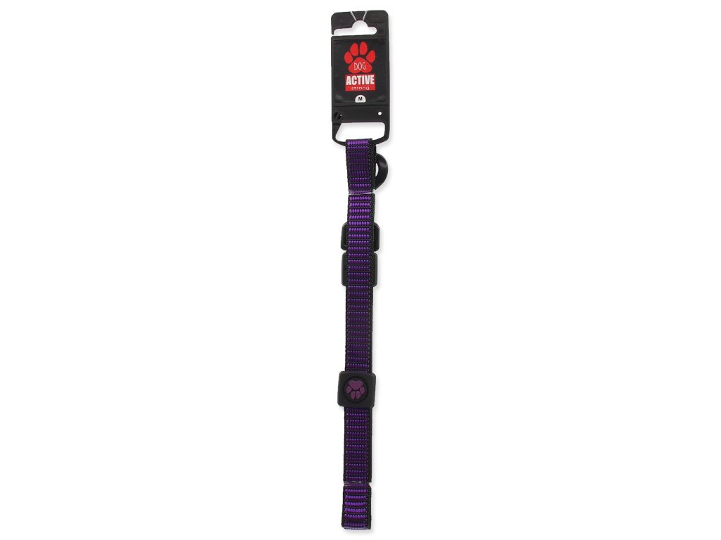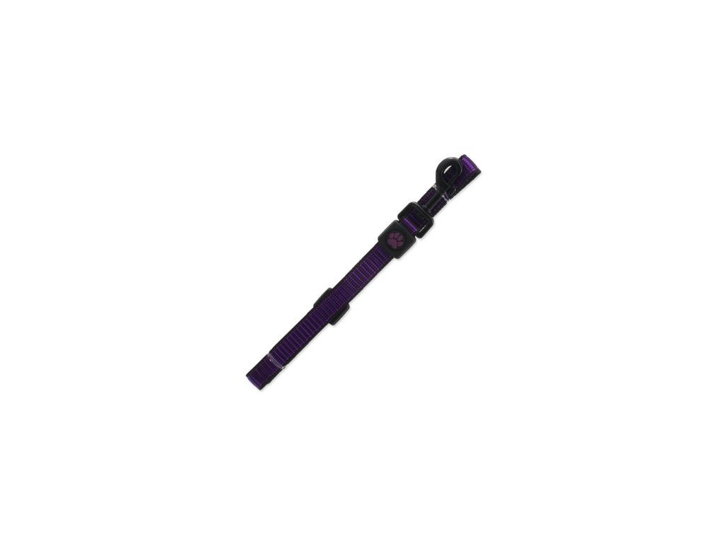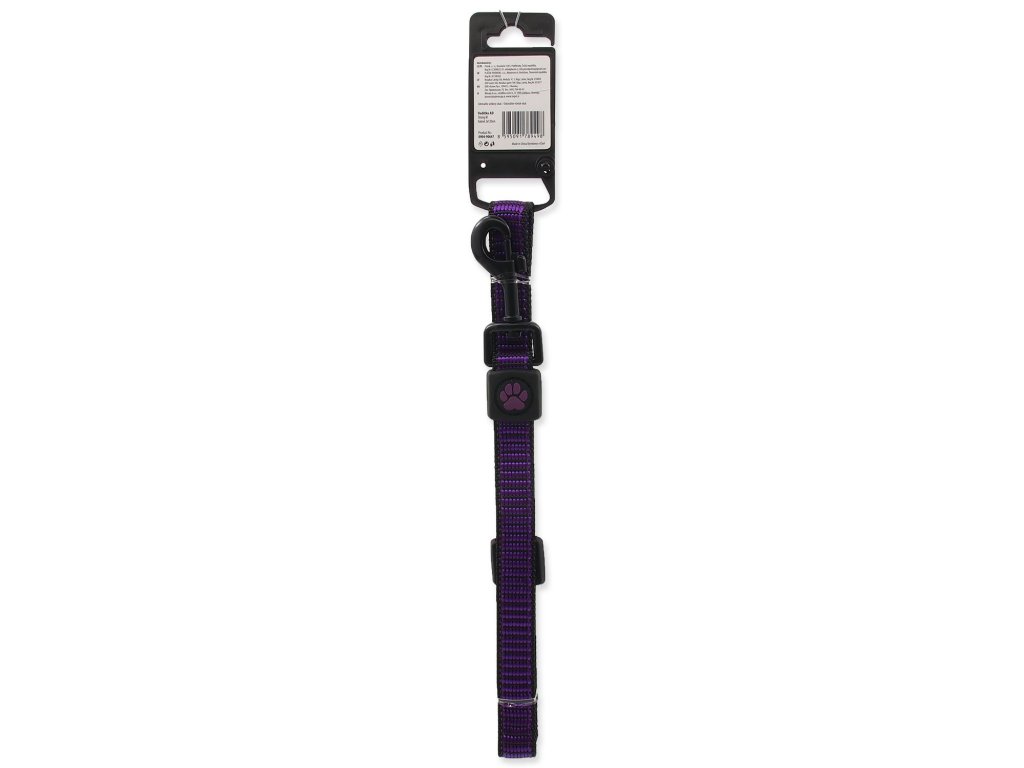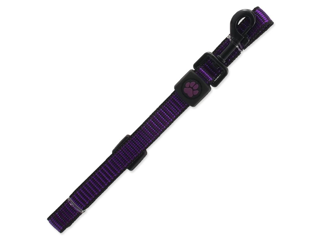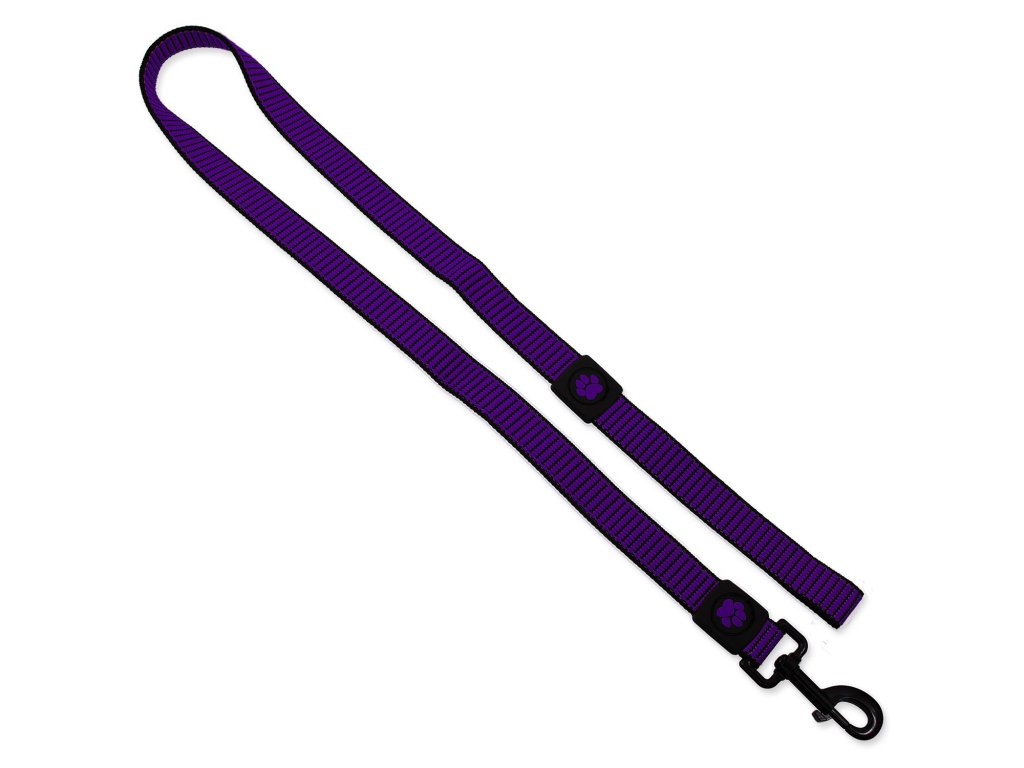 Textilné psie vodítko z pevného nylonu, ideálne pre malých psov. Klasický páskový typ, fialovej farby, 1,5 cm široký, dĺžka 120 cm.