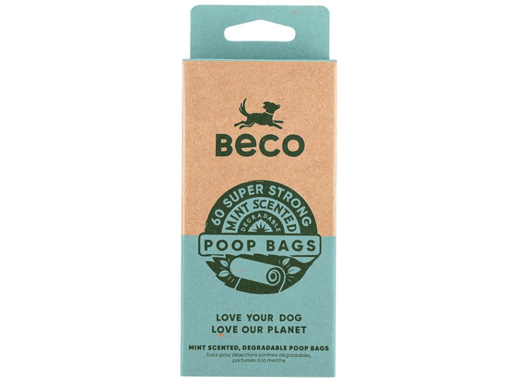 Vrecká na exkrementy Beco, 60 ks, s pepermintovou arómou, z recyklovaných materiálov