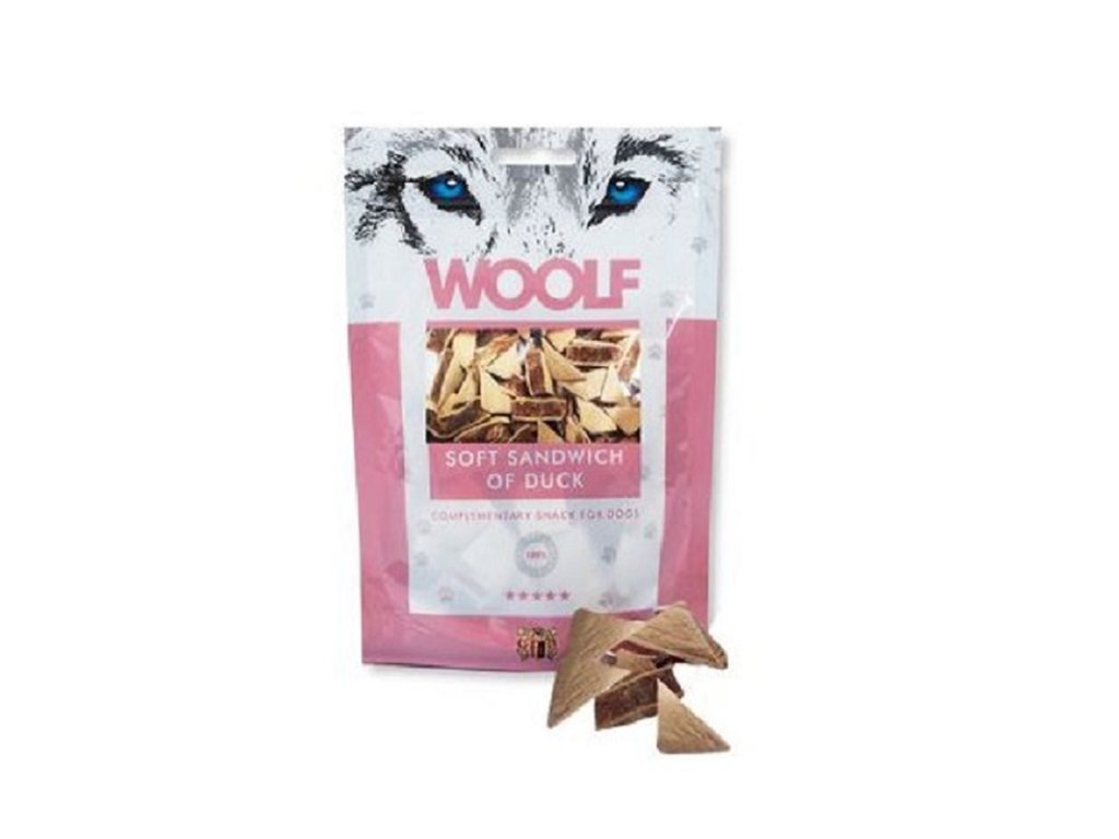 WOOLF pochúťka pre psov: Mäkký sendvič z kačacieho mäsa - 100g